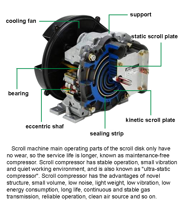 Product name:4kW 0.4m3/min Oil-free scroll air compressor E-5C Silent food and beverage medical laboratory air compressor