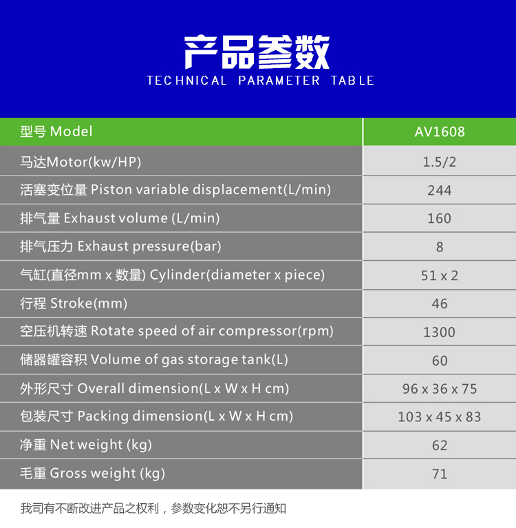 New energy saving and environmental protection AV1608 piston air compressor